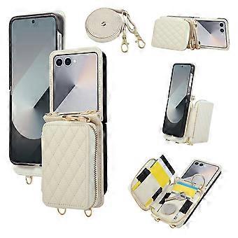 Pouzdro pro Samsung Galaxy Z Flip7 5G s pouzdrem na zip, držákem karet, PU koženým zadním krytem na telefon s ramenním popruhem