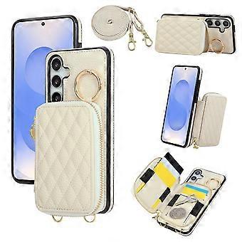 For Samsung Galaxy S26 Case Zipper Card Holder PU Leather Phone Back Cover with Shoulder Strap - Pin