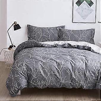 Sada povlečení na peřinu, 100% bavlněný povlak na peřinu s květinovým vzorem, měkká sada ložního prádla obsahuje 3 díly (2 polštáře, 1 povlak na peřinu)