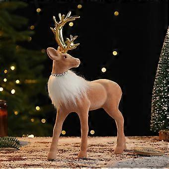 Christmas Simulated Reindeer Ornament - 11.02×7.87×2.76in Brown Plush Deer Figurine with Antlers Scarf, Festive Decor for Home Tree