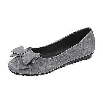 Gray Womens Casual Shoes Slip On Flat Shoes Bow Knot Detail Soft Sole Lightweight Comfortable Flock Fabric 1Pc Size 43 Eu
