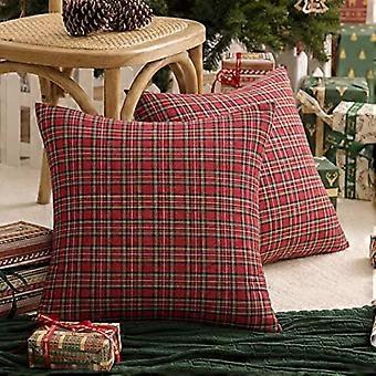 Sada 2 vánočních kostkovaných dekorativních povlaků na polštáře, skotský tartan, povlak na polštář pro farmářský dům, vánoční dekorace, červená a zelená, 20 x 20 palců