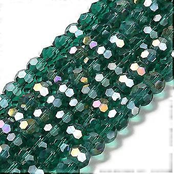 20 pramenů průhledných skleněných korálků, 32 faset, barva AB, kulaté, mořská zelená, 6x5,5 mm, průměr otvoru: 1,2 mm, cca 91~93 ks/pramen, 49,7~50,6 cm