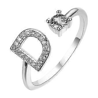 HIJONESWomen's Stainless Steel Round Zircon Capital Letter Stackable Ring Adjustable Alphabet Letter Pinky Ring Jewelry Gifts Silver D