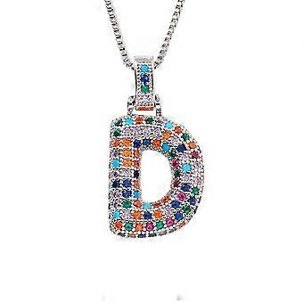 Women's Stainless Steel Trendy Bubble Rainbow Letter Necklace Cubic Zirconia Alphabet Name Pendant Necklace Silver D