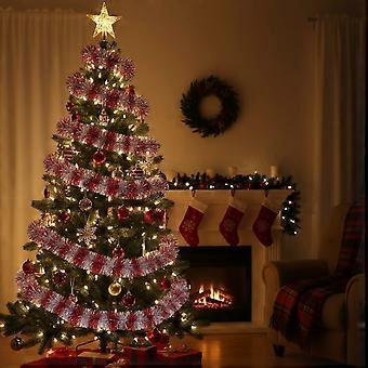 2,1 m červená metalická pozlátková girlanda na vánoční stromeček, párty a dekoraci do interiéru/venku – kompatibilní s vánočními motivy