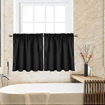 Šedý kuchyňský závěs s vaflovou vazbou, šířka 150 cm x délka 38 cm, barvený pruhovaný vzor, ​​kavárenský závěs do koupelny s kapsou, jeden panel