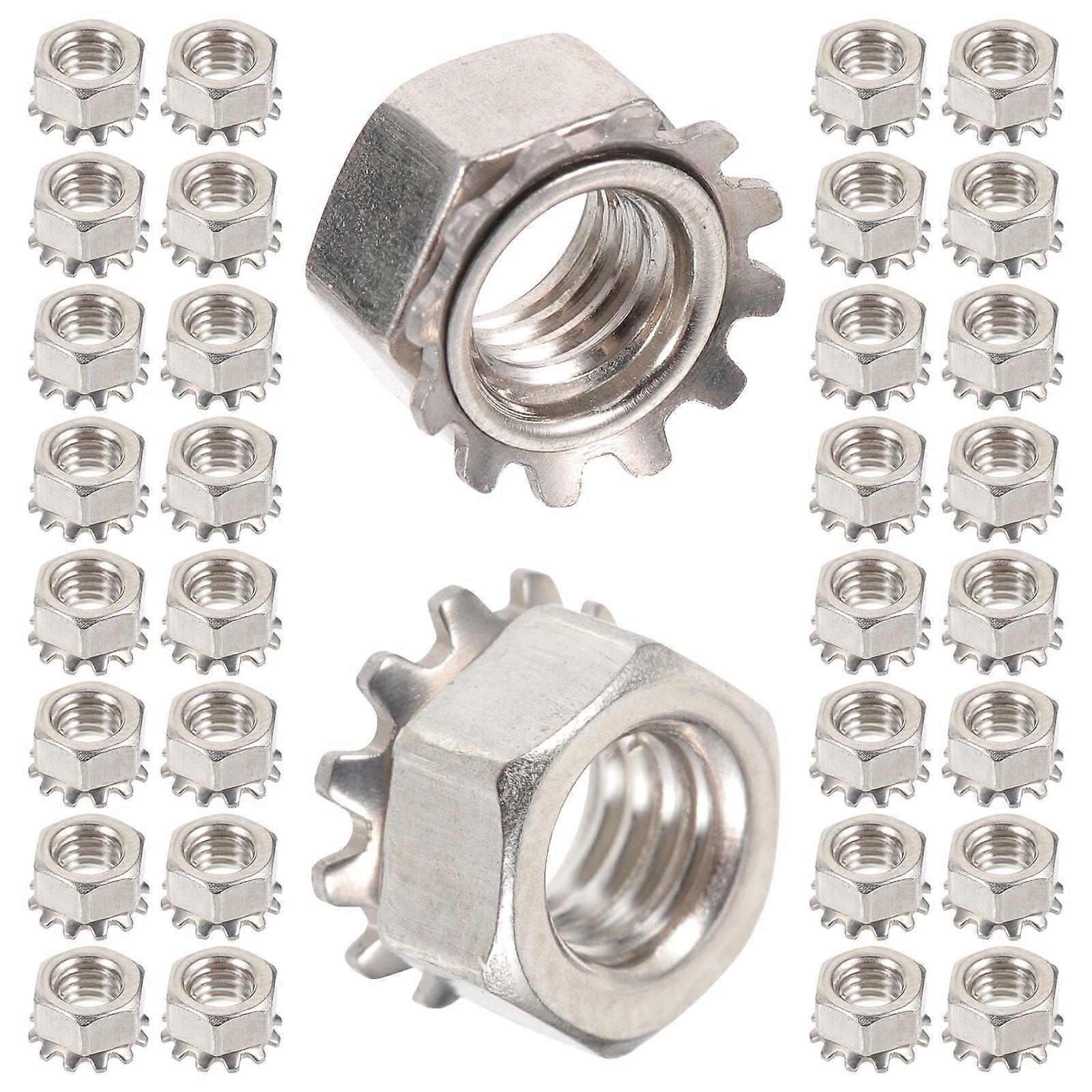 Hexagon Lock Nuts Stainless Steel Fastening Nut External Tooth Lock Washer Machinery Furniture 0.50X0.50X0.30CM 50Pack