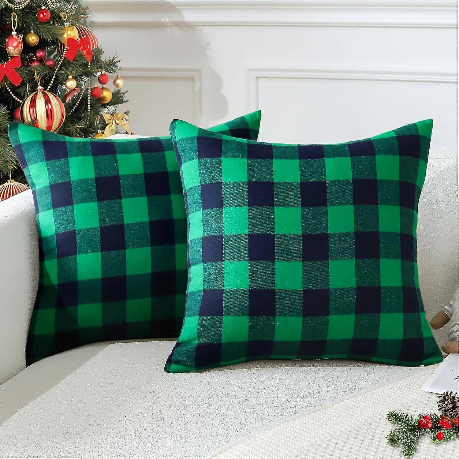 Set of 2 Decorative Christmas Cushion Covers with Classic and Rustic Scottish Tartan Pattern for Sofa Decoration 45 x 45 cm (Green and Black)
