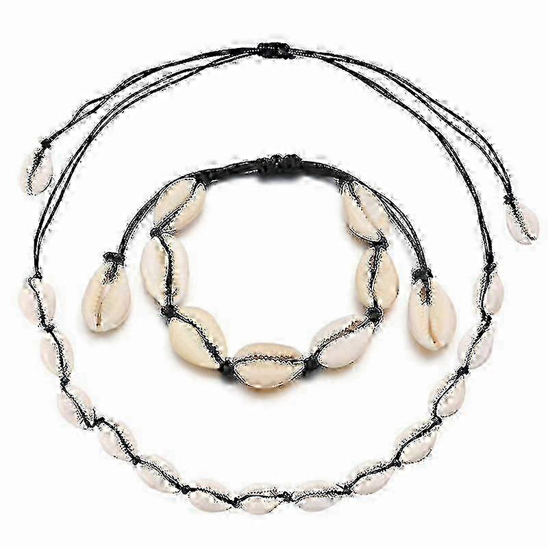 Shell Choker Necklace Seashell Necklace Adjustable Shell Necklace Bracelets Set Hawaiian Jewelry For Women Men Girls