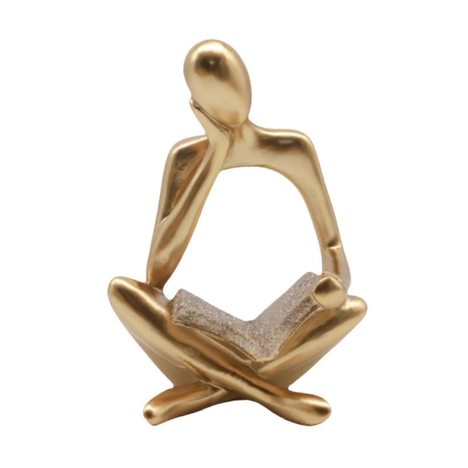 Thinker Statue Gold Gift Artwork Resin Sculpture for Cabinet Bedroom Hallway Left