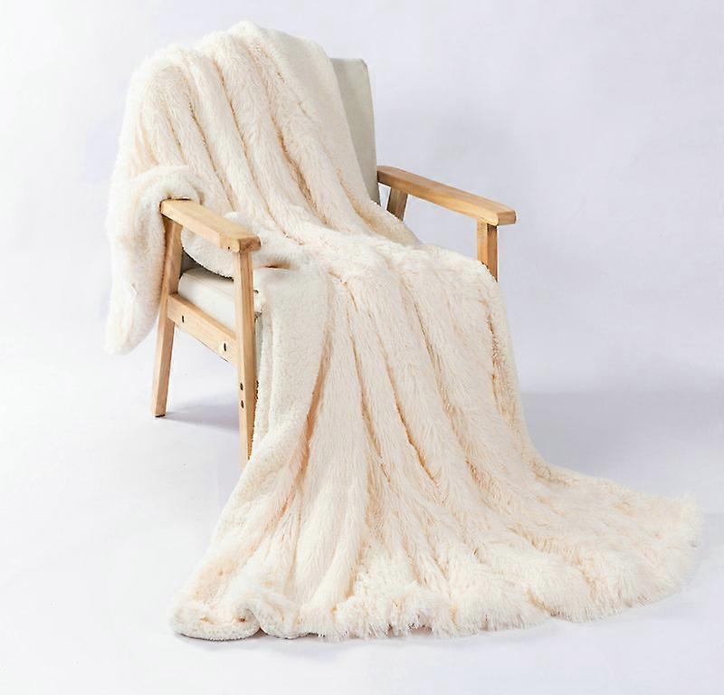 Sofa Blanket, Super Soft and Warm Fleece Blanket, Double-Sided PV and Flannel Fleece Blanket, 130x160cm Blanket, White Fur Blanket Suitable for Sofa,