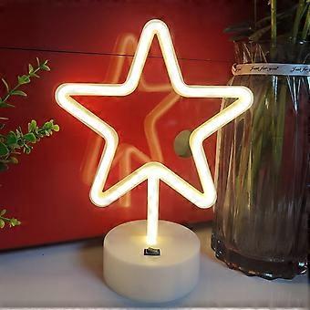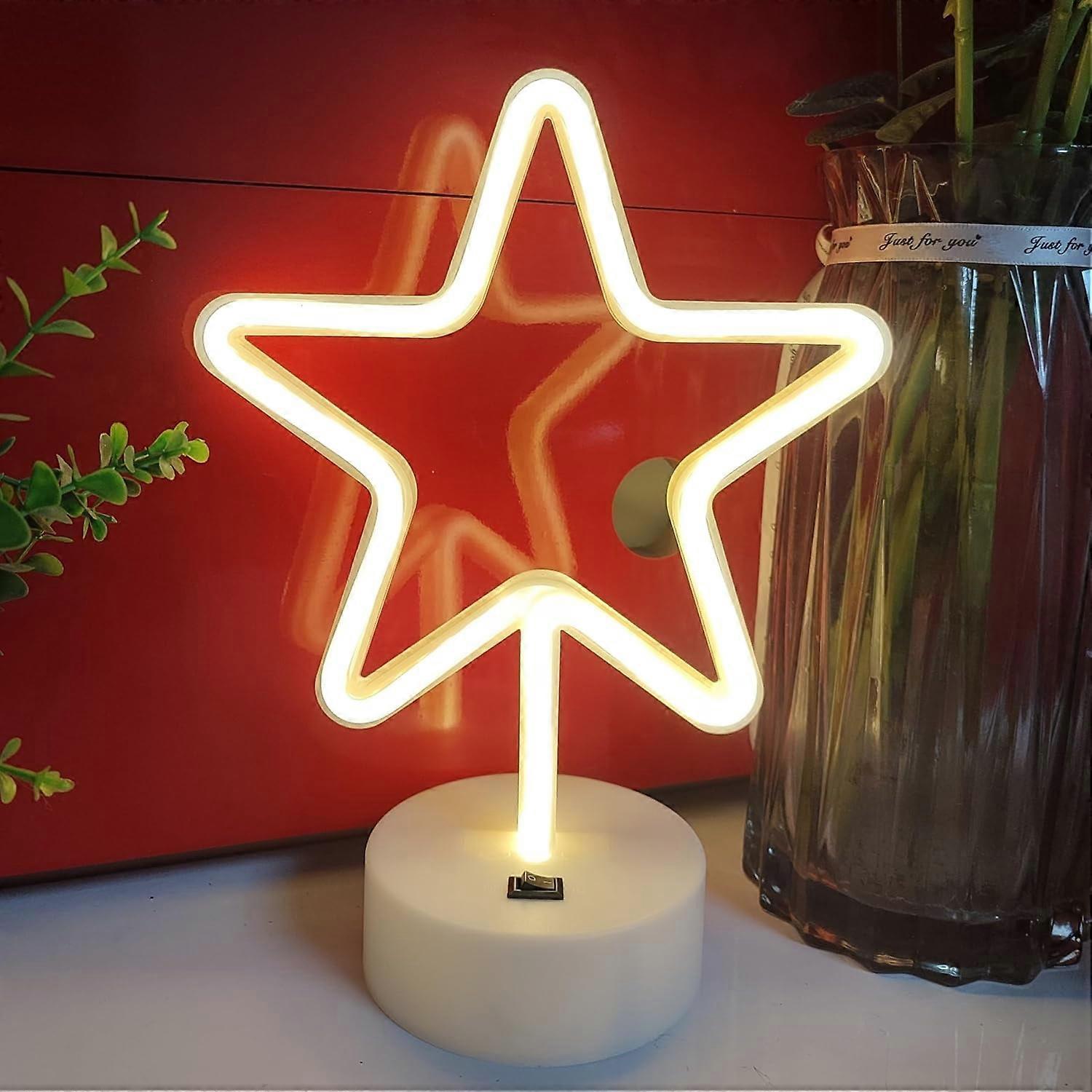 Star Neon Sign with Holder Base, USB or 3-AA Battery Powered, LED Desktop Wall Decor for Parties & Business (Warm)