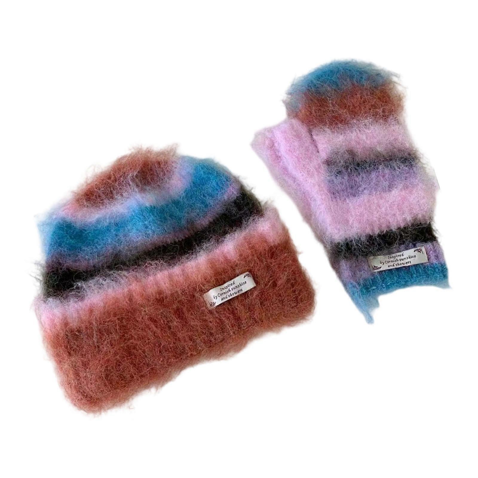 Stripe Pattern Knitted Hat Smooth Acrylic Fiber Elastic Band Unisex Cold Weather Hat for Various Outfits Multicolor