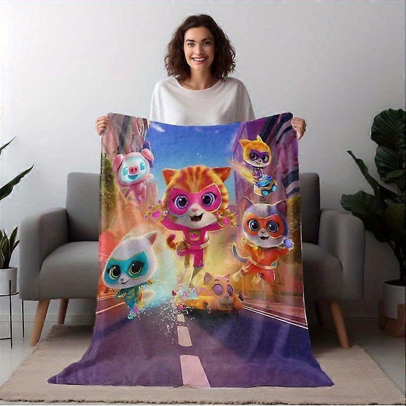 Super Kitty Print Flannel Blanket - Extra Large Plush Throw, Suitable for Bed and Sofa, Contemporary Design, All-Season -LKJAS303