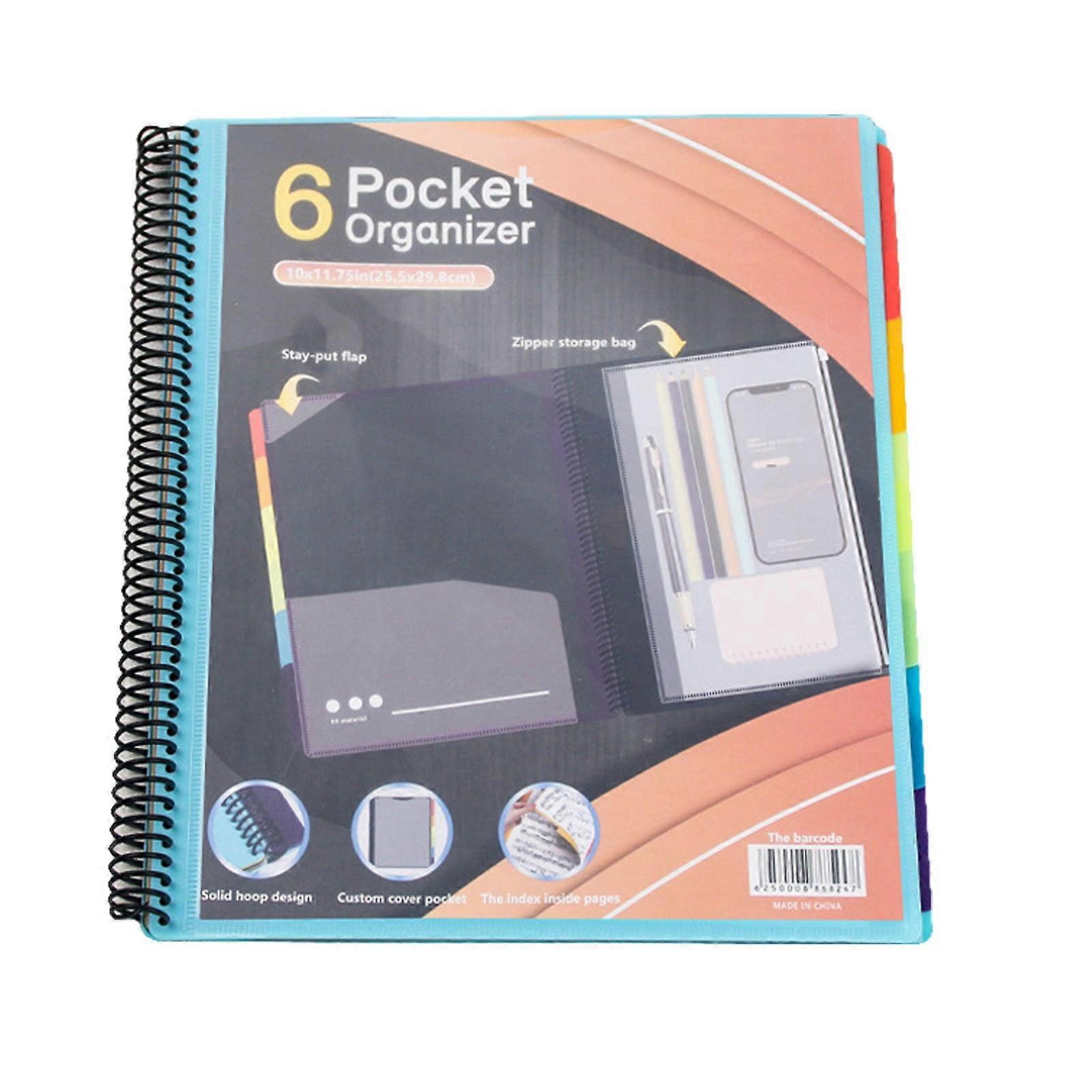 SUSHANG Color Coil Book 6/12 Pocket Poly Project Organizer, Round Tab, Multi-Pocket Folder, Letter Size, Back Cover Utility – School & Office Use