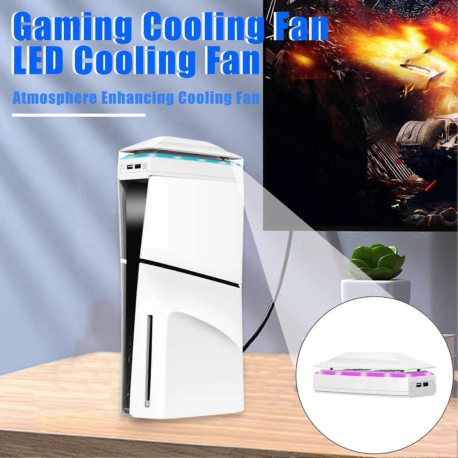 SUSUchens Game Console RGB Cooling Fan with Dust Cover Speed Adjustable 2 USB Port Colorful LED Light Cooler Fan for PS5 Slim White