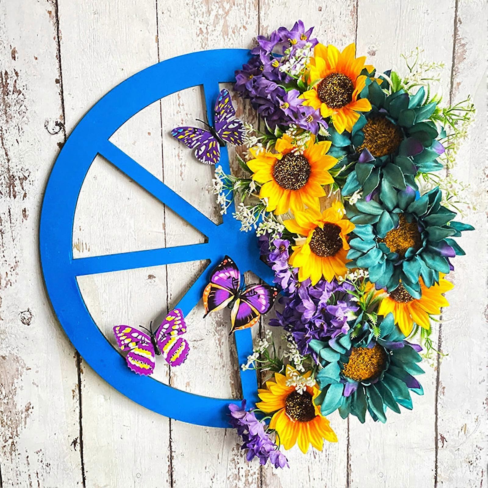 SUSUchens Spring Sunflower Wreath Front Door Pendant Realistic Looking Vibrant Color Simulation Artificial Wreath Ornament Blue