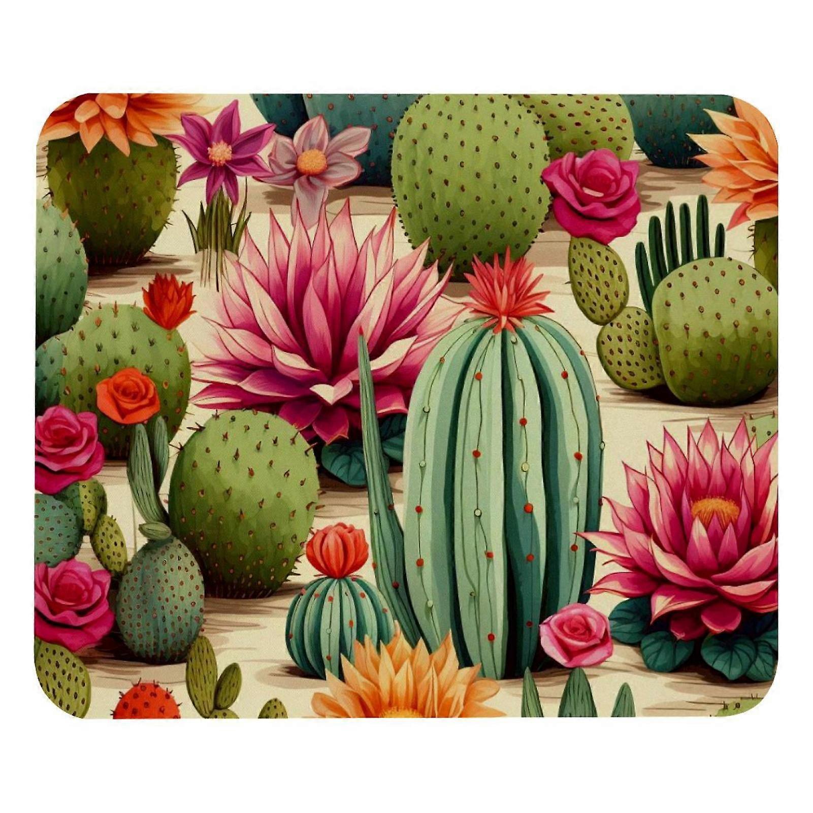 Thorny Cactus Beautiful Square Mouse Pad, Computer Mousepad Cloth with Rubberized Base, 8.3x9.8in/21x25cm