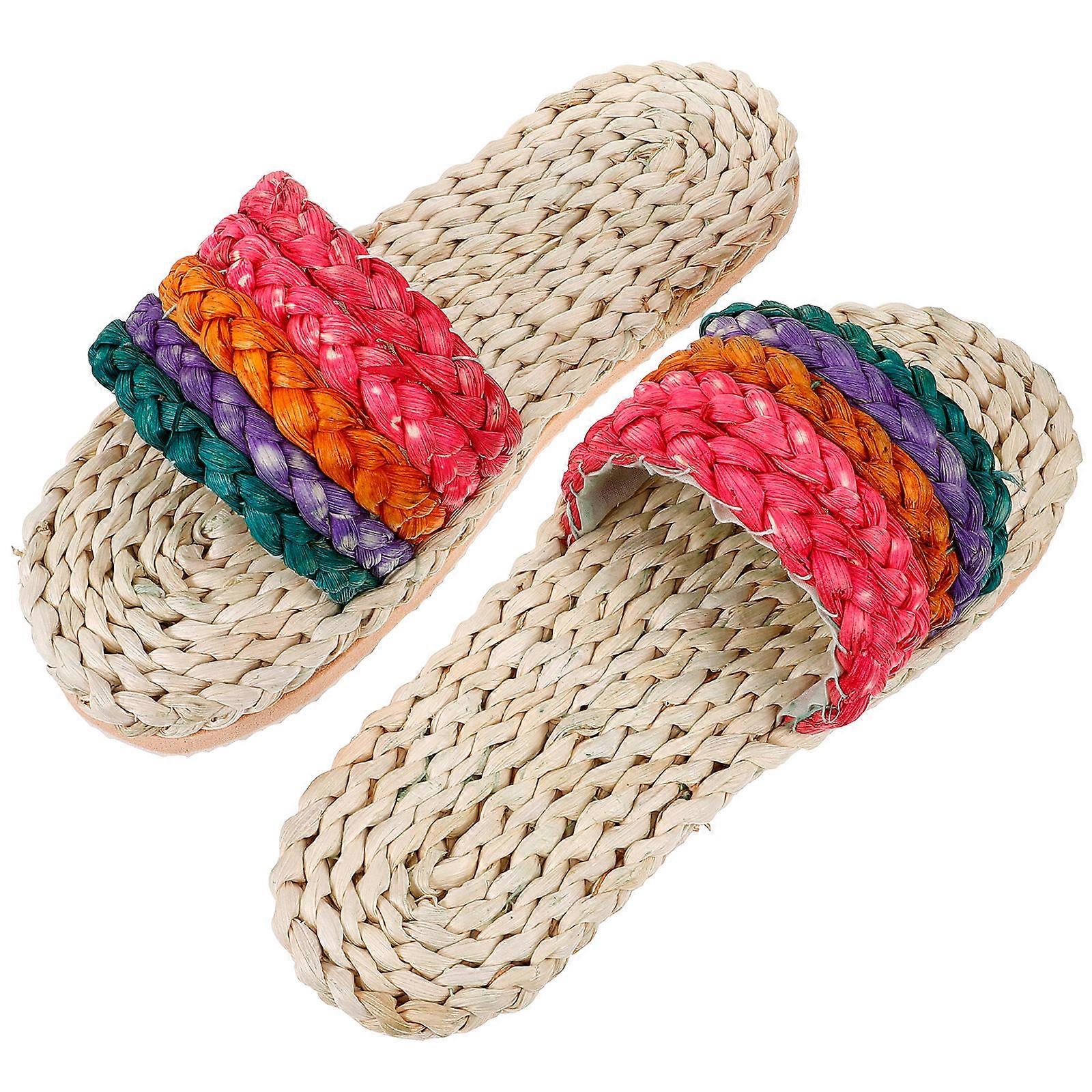 Made of linen material, this pair of slippers are durable and comfortable for use, which is your perfect choice for home, beach or any other casual occasion etc. With good workmanship and concise design, it will ensure its practicability and popularity among women. Features -Color:Assorted Color -Material:Linen -Size(38):25.00X9.00X8.00cm/9.82X3.54X3.14in -Shoes size: 25.0 CM, 8 US, 5.5 UK, 38 BRA, 39 EU, 9.825 Inch - Made of linen material, durable and comfortable for use. - Anti-slip bottom design give you great walking experience. - With classic color and shape, it can match with jeans, shorts, skirts or other different outfit perfectly. - Made of linen material, cool but not ice, it is good for your body. - It is the perfect slippers choice for home, beach or any other casual occasion etc. Package list: 1 x Pair of slippers