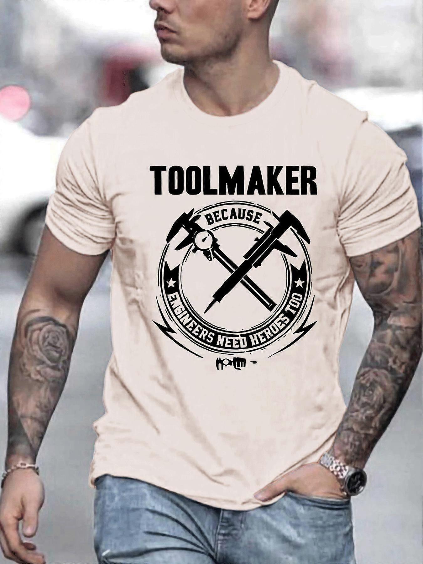 Toolmaker Crew Neck T-Shirt Casual Style with Graphic Print for Adults - Polyester Knit Fabric with Slight Stretch, Summer Regular-FKGFD148