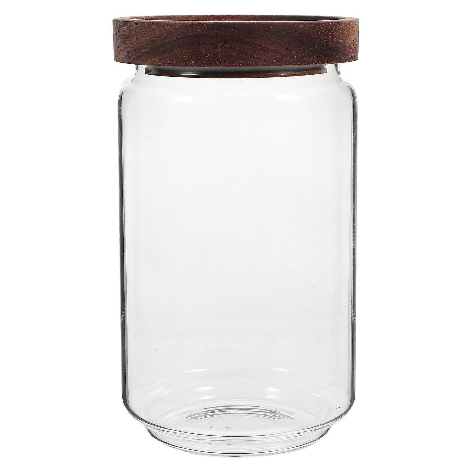 Transparent Glass Candy Jar with Wooden Lid for Storage Use High Borosilicate Portable 750ML
