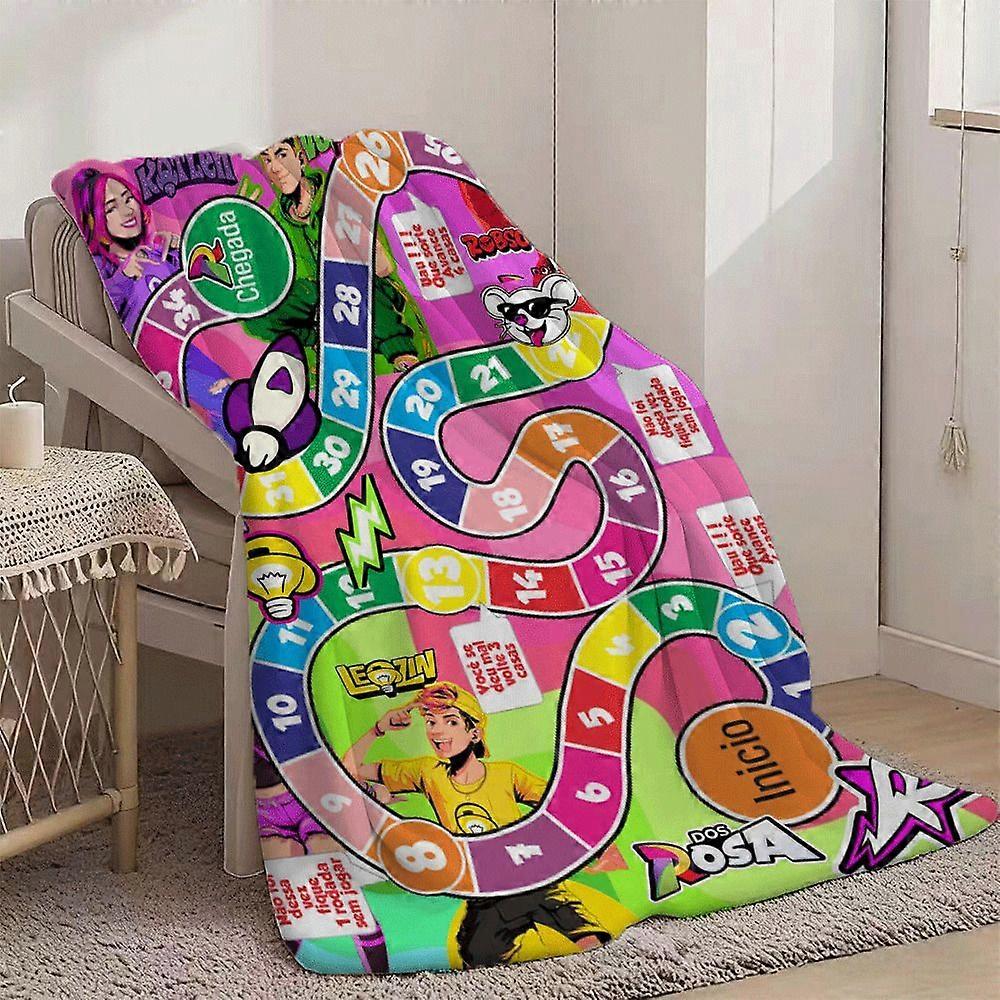 Trivia Board Game Theme Flocked Blanket with, & Candy Crush Icons - Plush Educational Number & Letter Learning &, All-Se-POIAS102