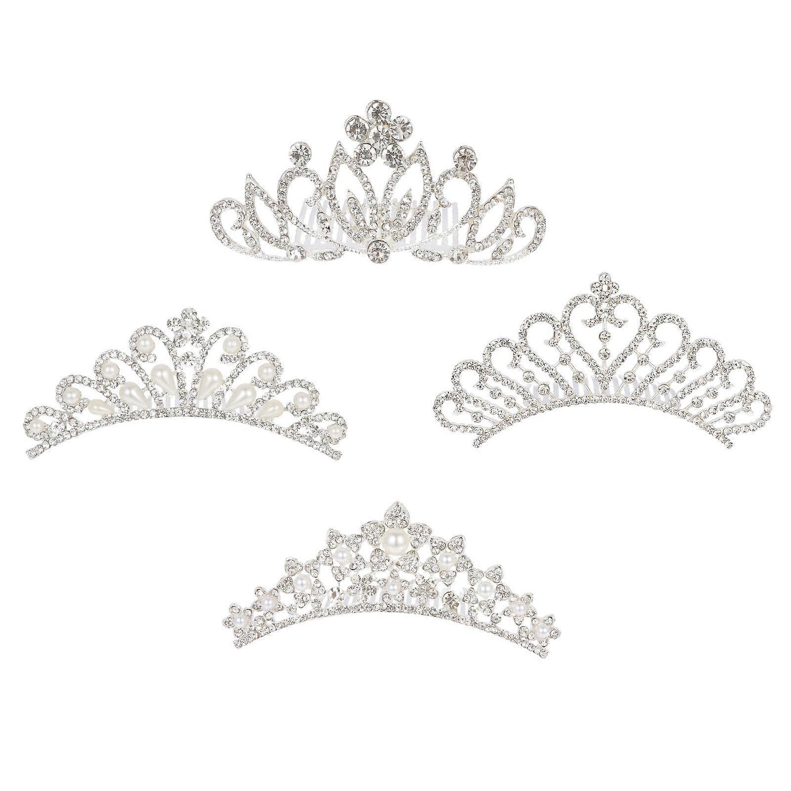 Crown Shape Appearance Stable Comb Design Girls Pearl Tiara 4Pcs
