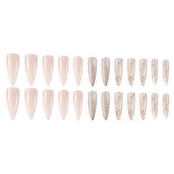 24 kusů třpytivého mandlového akrylového lisu na nehty lesklý plný kryt falešných nehtů na nehty pro salon kvalitní manikúra
