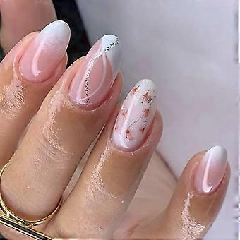 24 ks mandlových nalepovacích nehtů s lepidlem, střední jehlové umělé nehty, lesklý design hvězdy