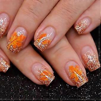 Krátké čtvercové nalepovací nehty s oranžovou francouzskou špičkou, 24 ks, odolná akrylová sada, připravená k nošení