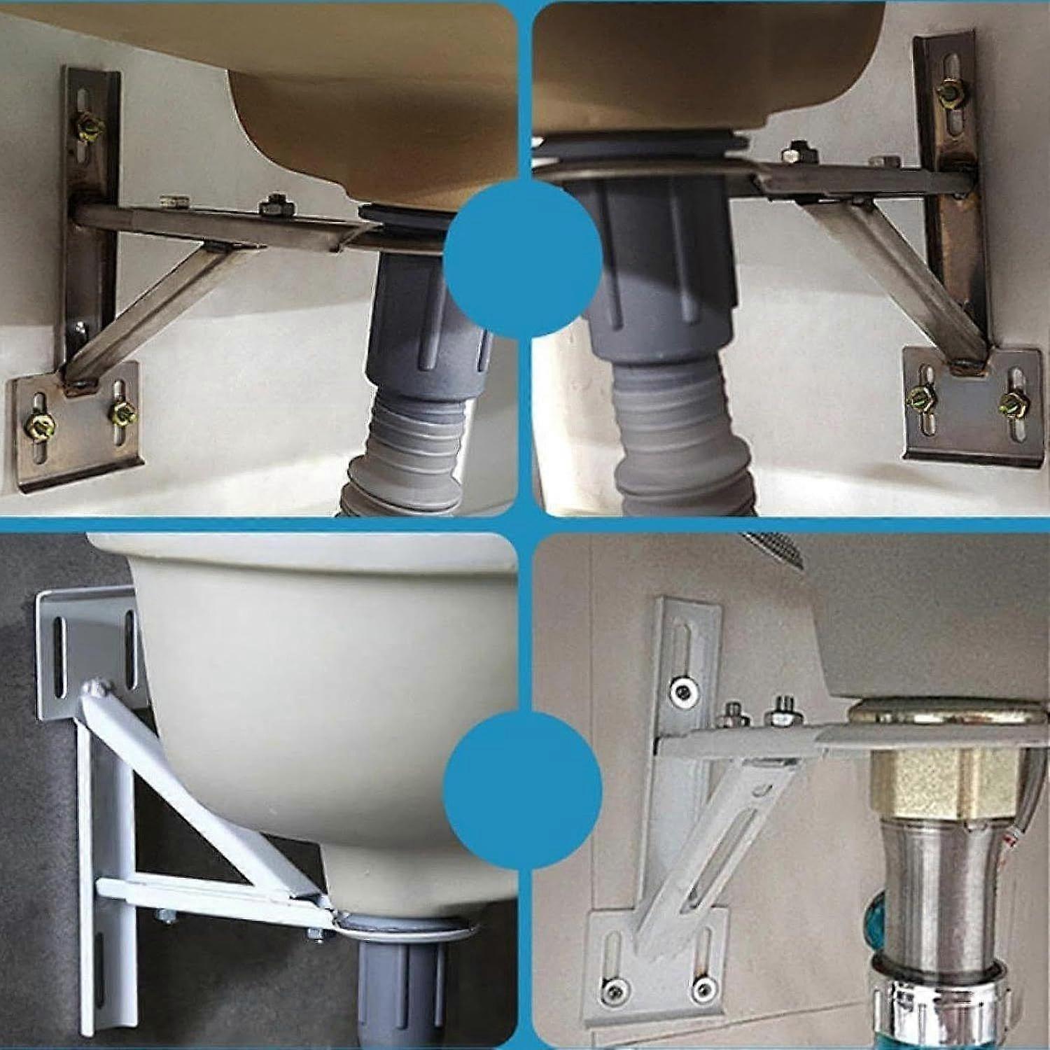 Undermount Sink Support Repair Kit and Triangle Bracket Heavy Duty Adjustable Telescopic Weight Sharing Fixing Suitable for Renovation, PP Coated Iron