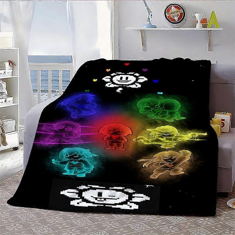 Undertale Neon Glow Character Group Portrait Fleece Blanket - Soft Flannel with Pixel Art Design, All-Season Cozy Throw -MNBVC83