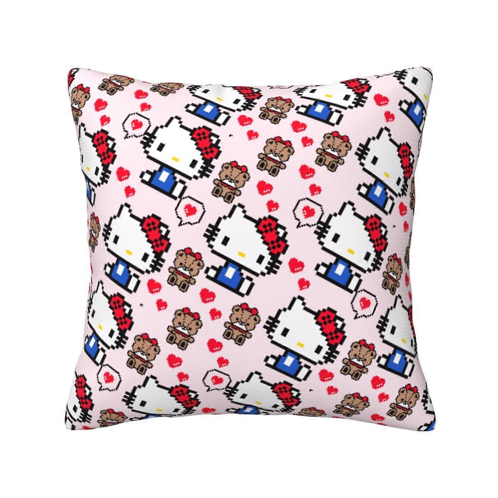 Hello Kitty Pattern Four Seasons Universal Pillow Cover Square Fabric Cushion Cover Suitable for Sofa Bed Bedroom Living Decoration 12"x12"