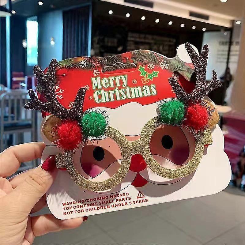 Christmas Glasses Frame Santa Claus Glasses Party Decorations Cartoon Headbands Handmade Multiple Styles with Greeting Card