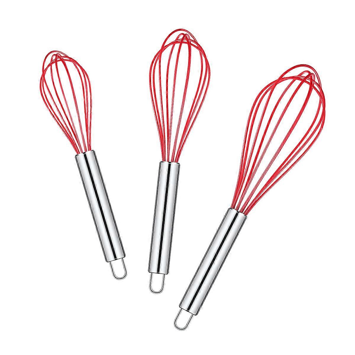Egg Beating Small Whisk Silicone Hand Mixer Kitchen Tools For Blending And Stirring Random Color 8 Inch 3Pack