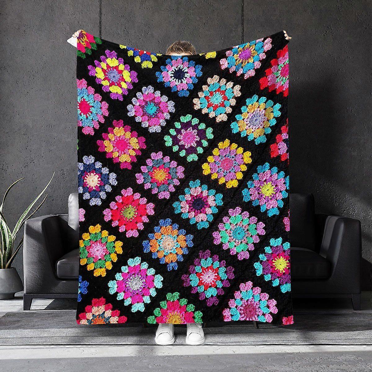 Vibrant Floral Print Flannel Blanket - 100% Polyester, Soft & Lightweight for All Seasons, Perfect for Bedding, Sofa, an-asdfg445