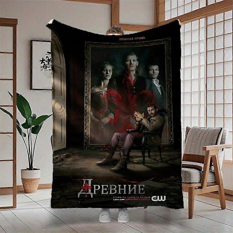 Vintage Vampire Gothic Movie Poster Print Flannel Blanket - Soft Polyester, Red-Eyed Character Design - Ideal for Sofa, -EDFGH445