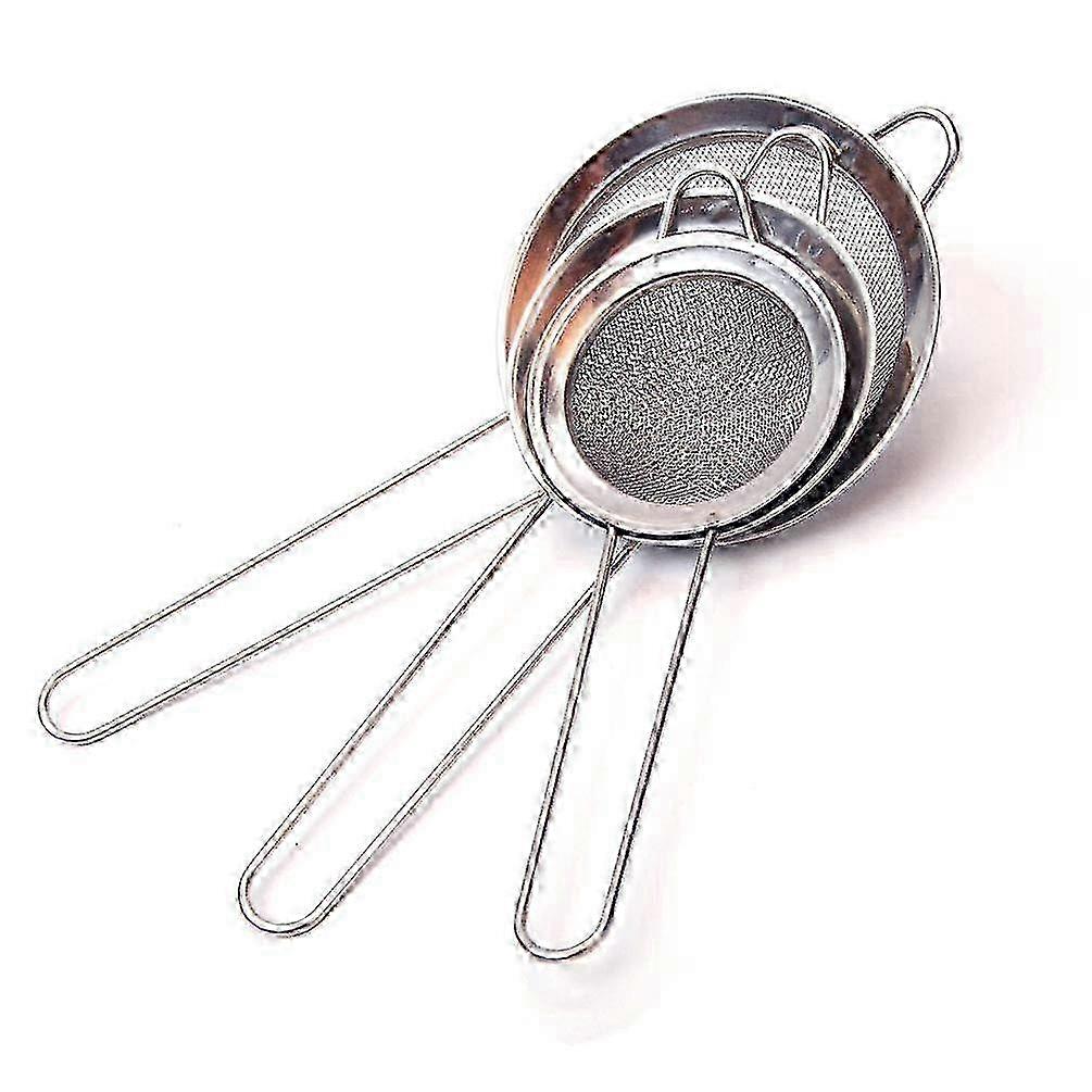 w 3-Pack Stainless Steel Fine Mesh Strainers, Hook & Handle Design