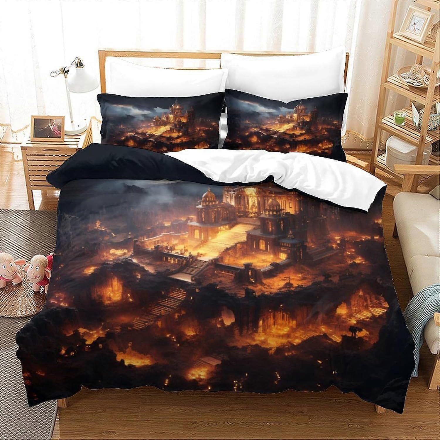 W461 3D Printed Underworld Castle Duvet Cover Set Mysterious Bedding Set, Soft Microfibre, 2 Pillowcases, Hidden Zip, M461