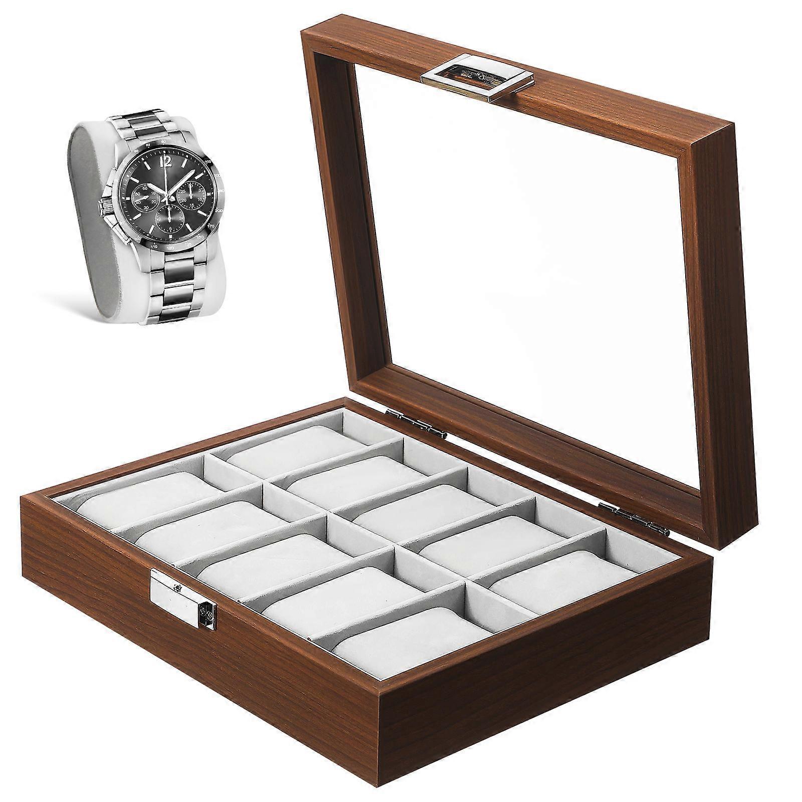 Watch Display Box Jewelry Case for Storage 2Pcs Wooden Tray with Clear Window