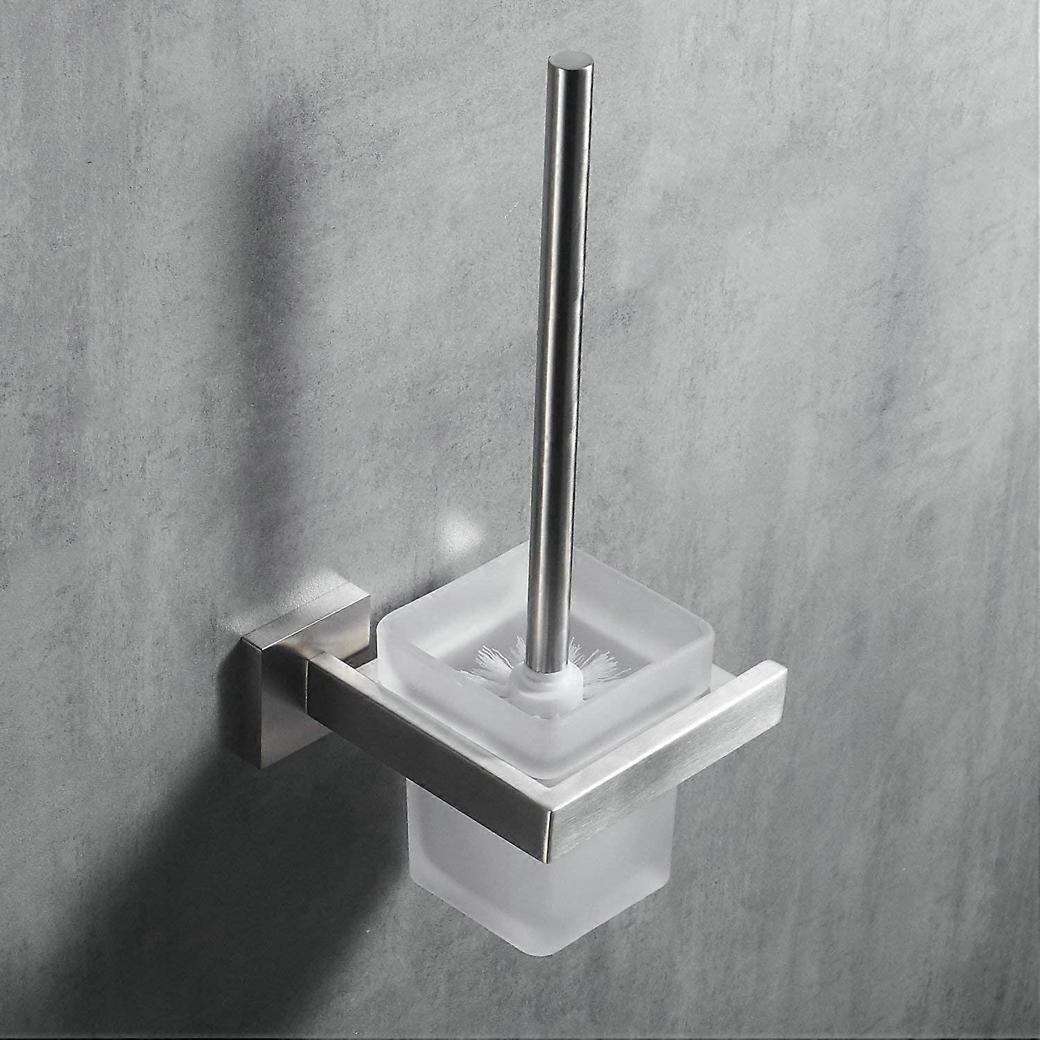 Wall-Mounted Toilet Brush, Matt Finish, Brushed Stainless Steel and Frosted Glass