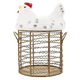 White Ceramic Egg Storage Box and Multi-functional Fruit Basket for Kitchen countertop Display 6.5