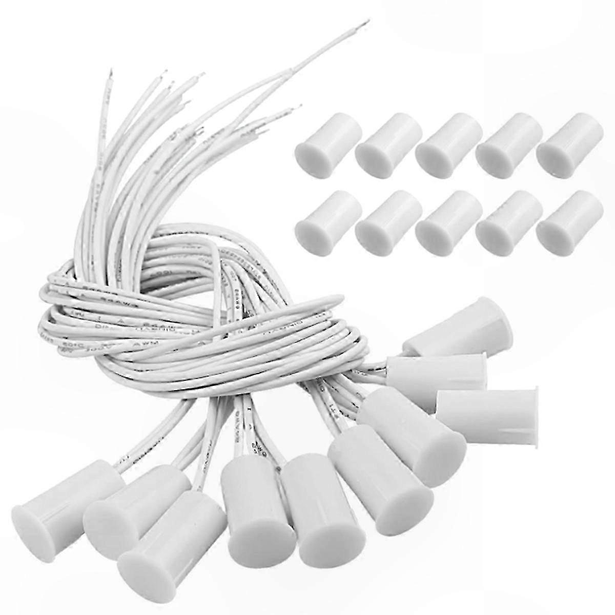 White Magnetic Door Switch, Wired Security Sensor for Windows and Doors, 10 Sets