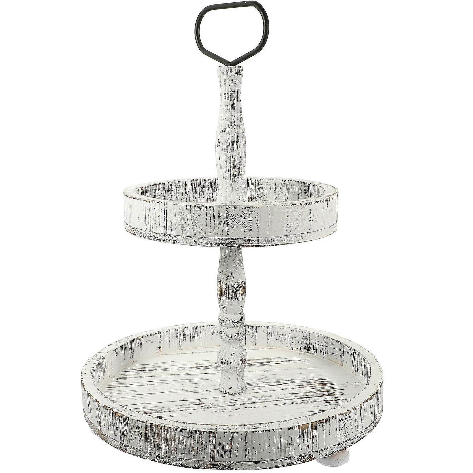 Wood Tiered Cake Tray with Fine Workmanship for Decor Light Grey Two Tiered Stand