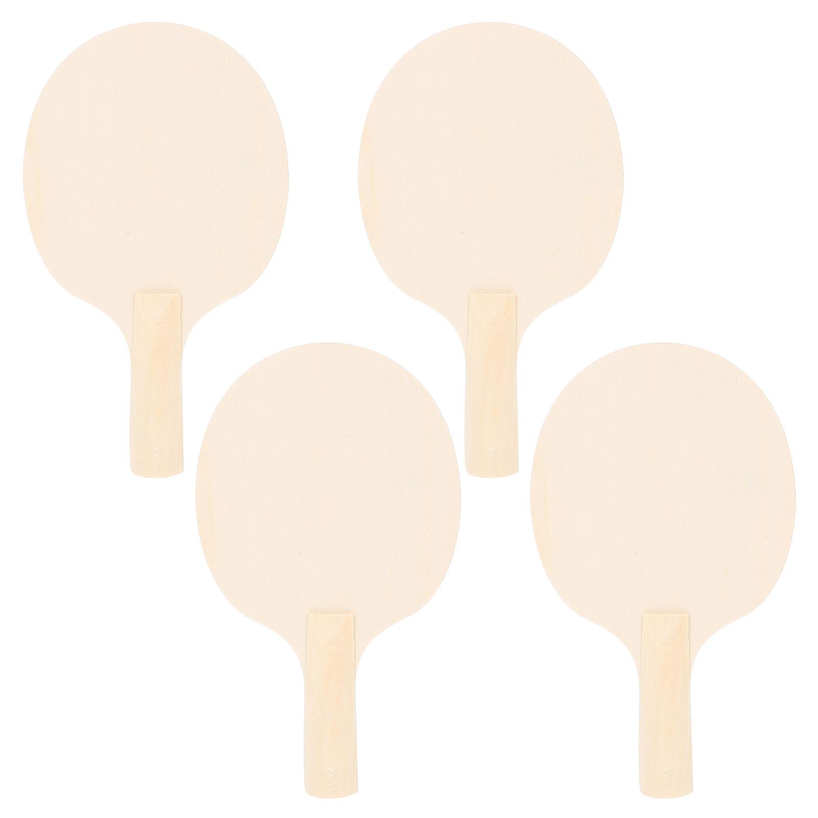 Wooden Table Tennis Paddle Blanks Set 4pcs Unpainted Rackets for DIY , Skill Practice, and Creative Craft Projects for Kids and Adults