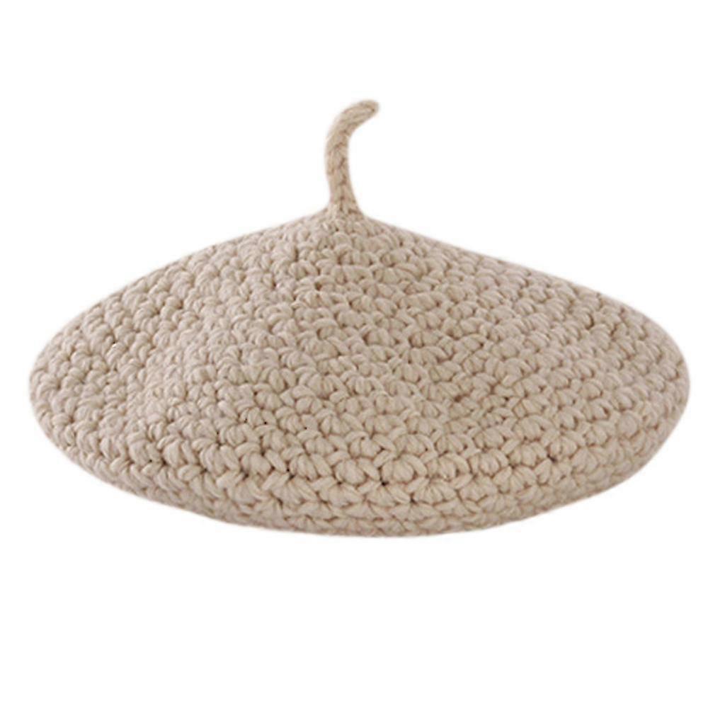Women Winter Knitted Beret Cap Solid Color Chunky Crochet Painter Beanie Hat
